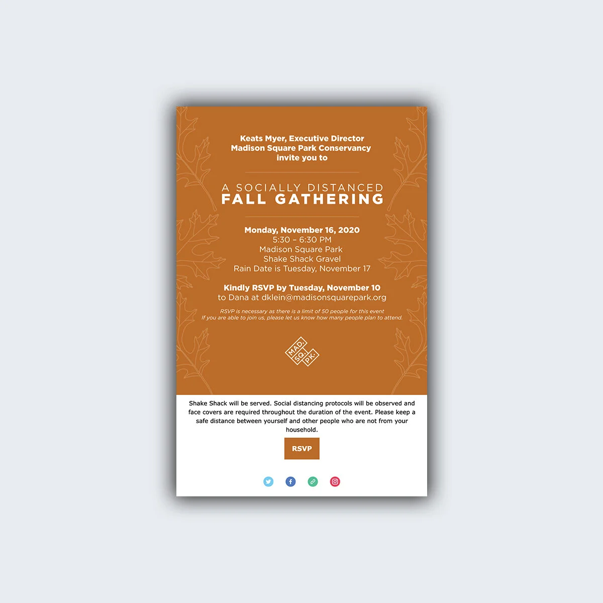 As the Graphic Designer and Communications Associate for Madison Square Park Conservancy, I create all print and digital invitations.
